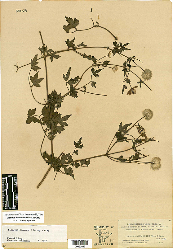 Two specimens collected by Ferdinand Lindheimer in central Texas in 1850, from the collection of the Plant Resources Center